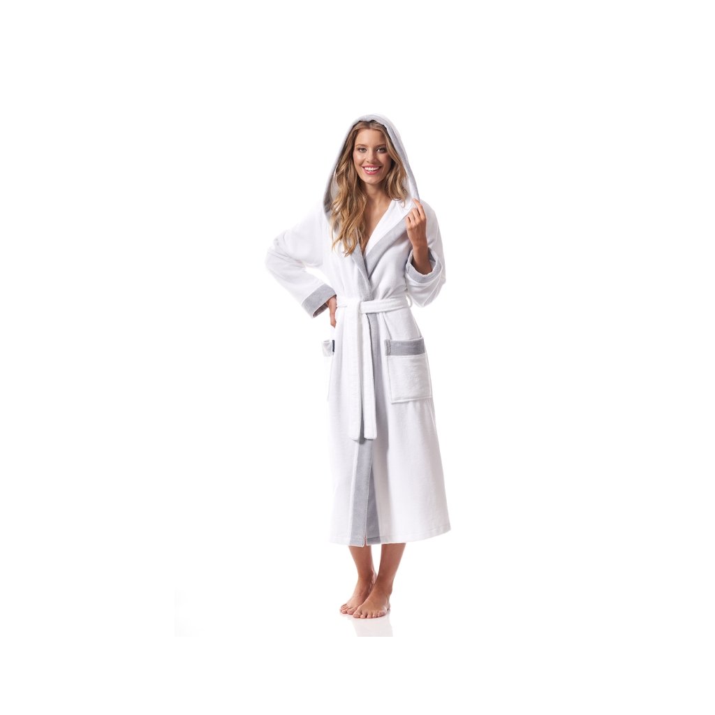 Dámsky dlhý dámsky župan s kapucňou Geena biela/sivá 120cm Morgenstern