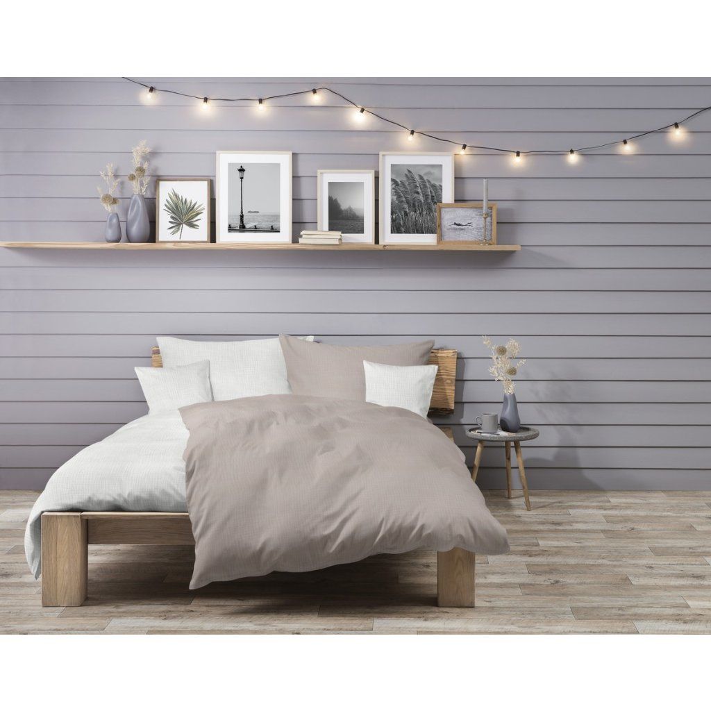 Žiadne syntetické prísady, žiadne elastánové vlákna, žiadne chemické úpravy. Čistá bavlna, dvojito tkaná. Výsledok je maximálne priedušná tkanina, ktorá reguluje teplotu počas spánku prirodzeným spôsobom — v lete chladí, v zime netlačí.