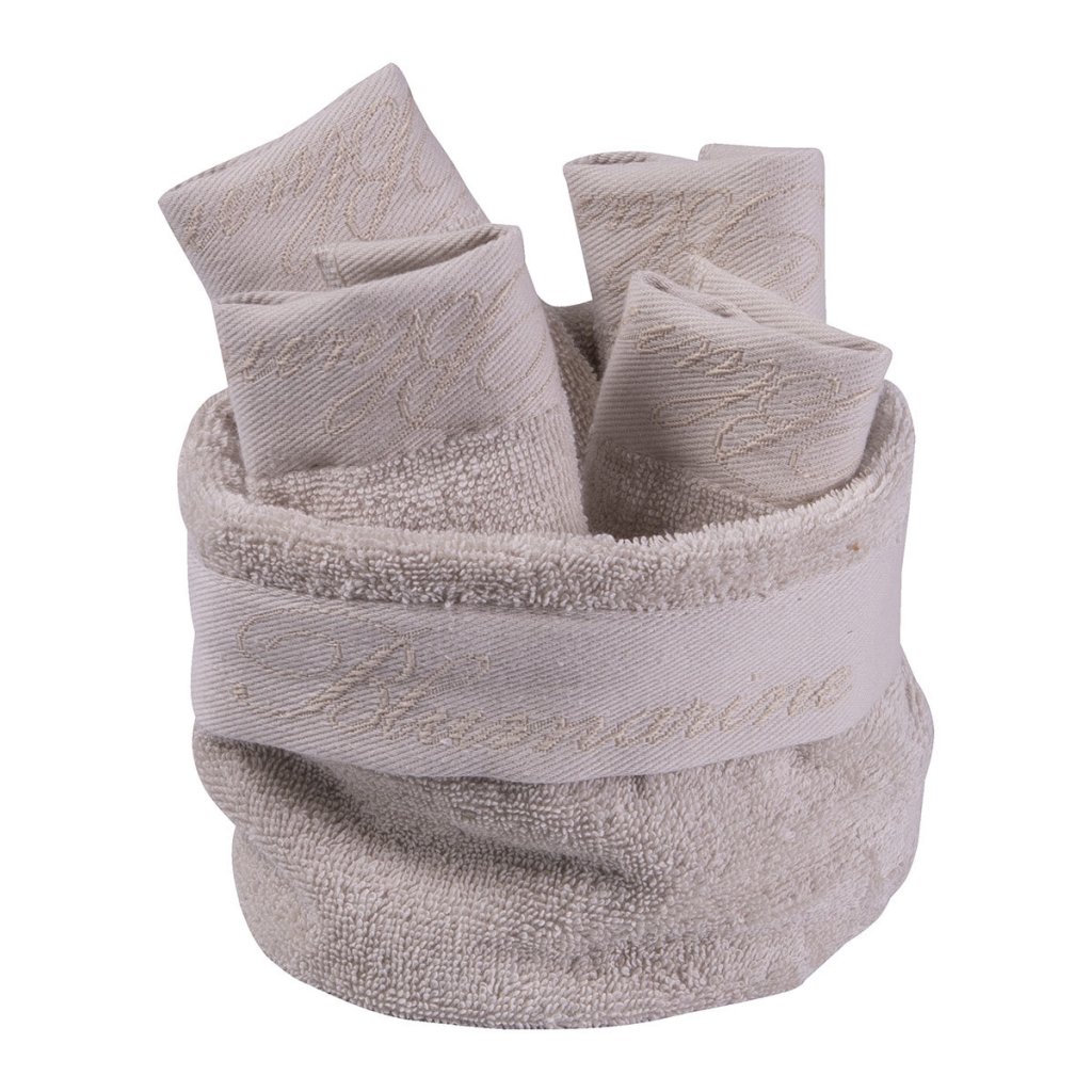 Košík s uterákmi SPA Blumarine – 4 ks z hydrofilnej bavlny Dove grey